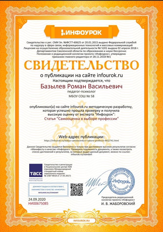 Статья «Самооценка в выборе профессии» (скачать файл)