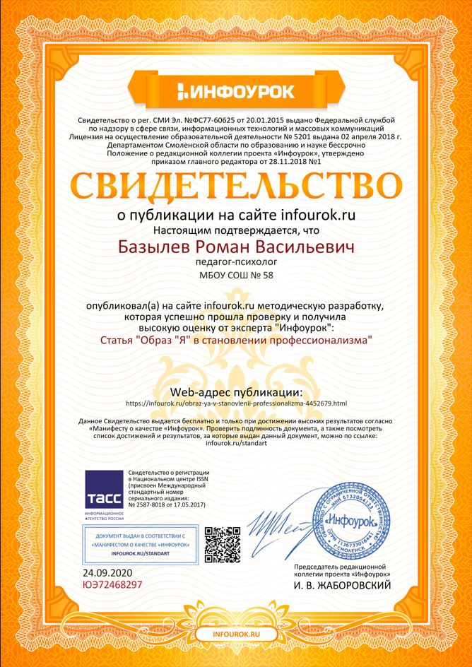 Статья «Образ «Я» в становлении профессионализма» (скачать файл)